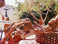 Even though Cairo wasn't there yet, you know Cairo isn't going to let all these other towns have a claim and not find some of its own, don't you? First they went to On, the ancient Heliopolis, not on the site of the modern suburb of that name but on the site of Matariyya. There Jesus took Joseph's staff, dug a well, and planted the staff, which grew into a tree which became a goal of pilgrimage and was venerated by Muslims as well as Christians. (The Qur'an has a story of Mary resting under a palm tree, and this and the Matariyya tree became conflated in later folklore. The Matariyya tree is a sycamore.) The present tree, still venerated, is alleged to be grown from the shoot of an older tree: